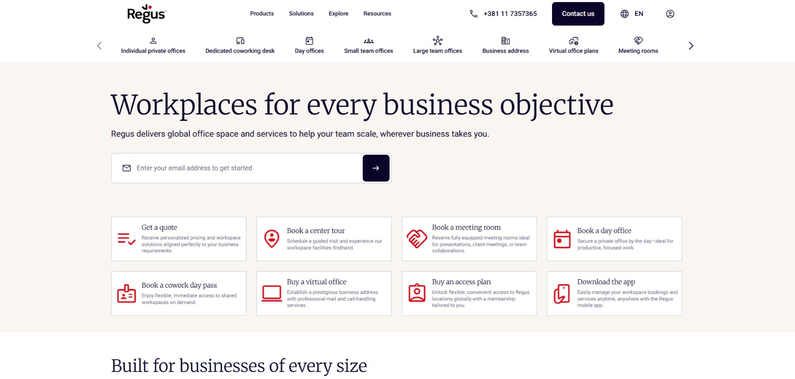 When you need a place to meet clients or focus for a few hours, you can book private offices, coworking desks, or meeting rooms directly through the Regus platform.