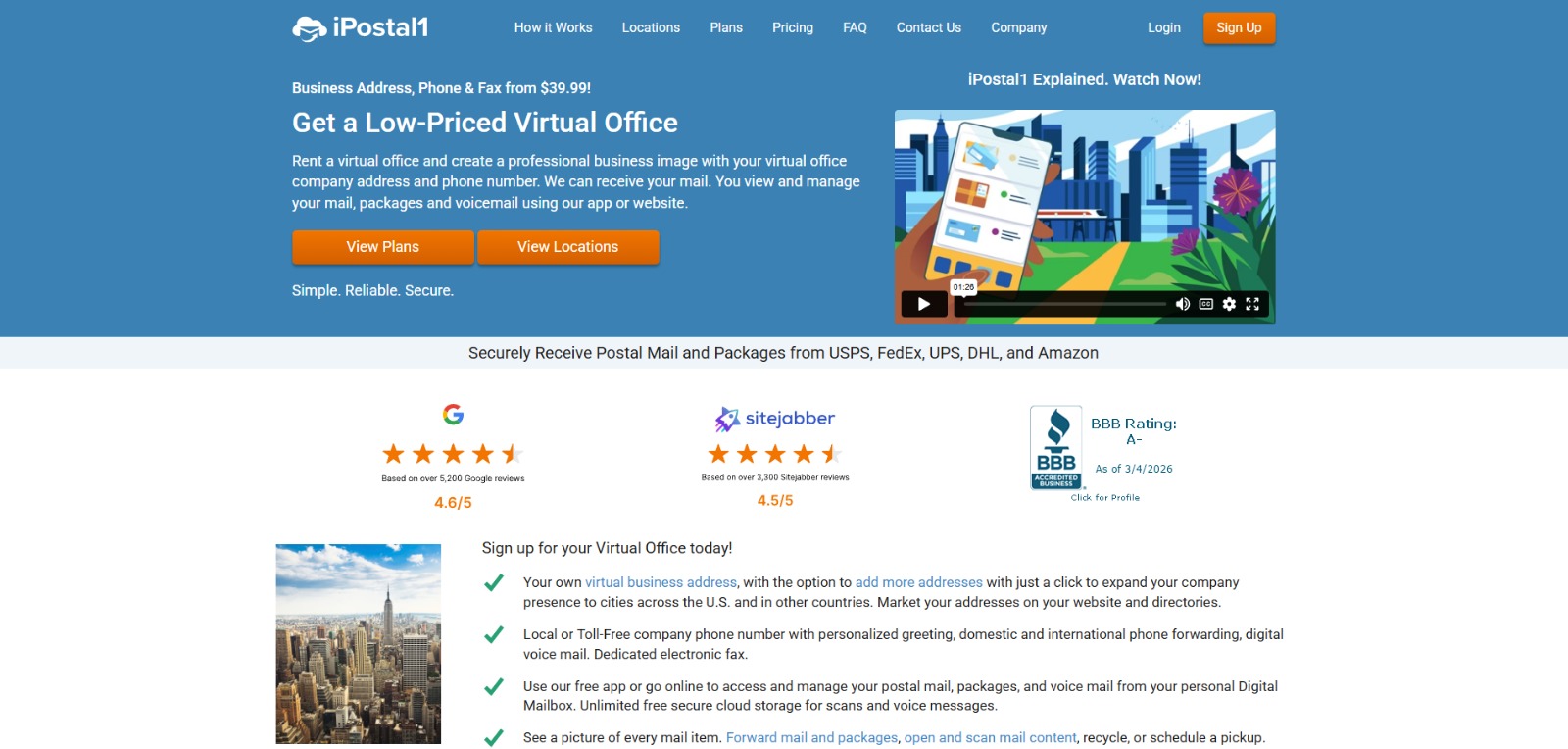 - Virtual mailbox or business address plans starting at affordable monthly rates