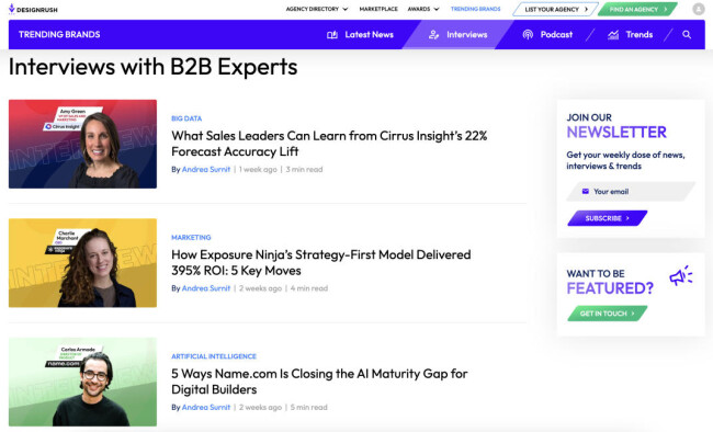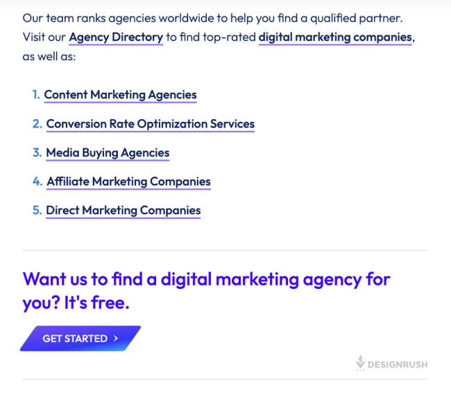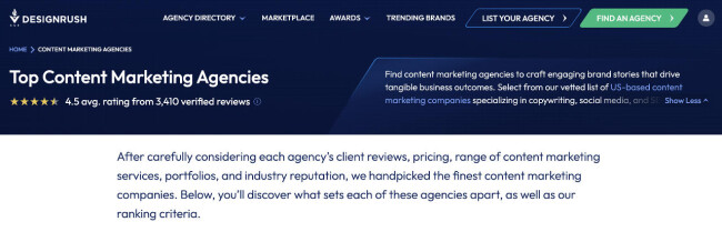 Our team ranks agencies worldwide to help you find a qualified partner. Visit our Agency Directory for the Top Content Marketing Companies, as well as: