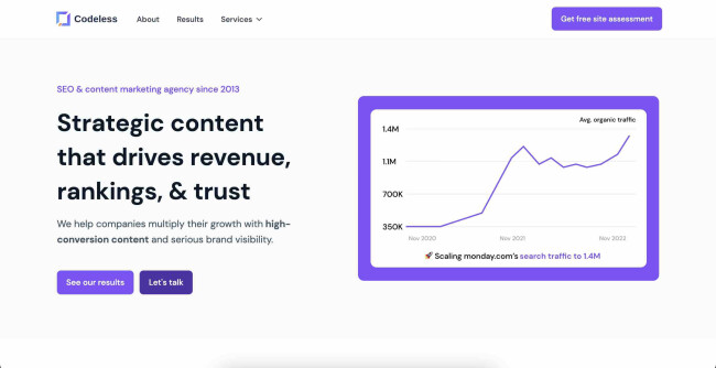 • Notable Clients: Semrush, BigCommerce, SpyFu, Sprout Social, Influencer Marketing Hubb, and more