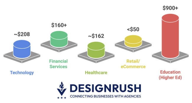 - Education (Higher Ed): $900+ per lead (FirstPageSage); the highest, due to intense competition for students.