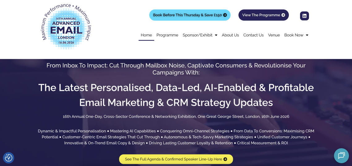 Advanced Email Conference London is a cross-sector email and CRM conference focused on personalization, AI, omnichannel strategy, and measurable ROI.