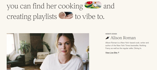 A perfect example of a creative portfolio is Mindy Nguyen’s website, a designer from Los Angeles. She used a large font to present some personal information, enriched with animated GIFs followed by a selection of her design projects.