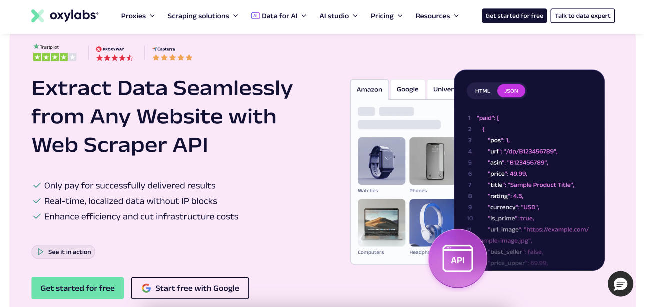 Oxylabs is a strong choice for businesses that need consistent, large-scale web scraping without sacrificing stability. It’s designed to handle complex websites and frequent data pulls while maintaining structured, reliable output for analytics and monitoring.