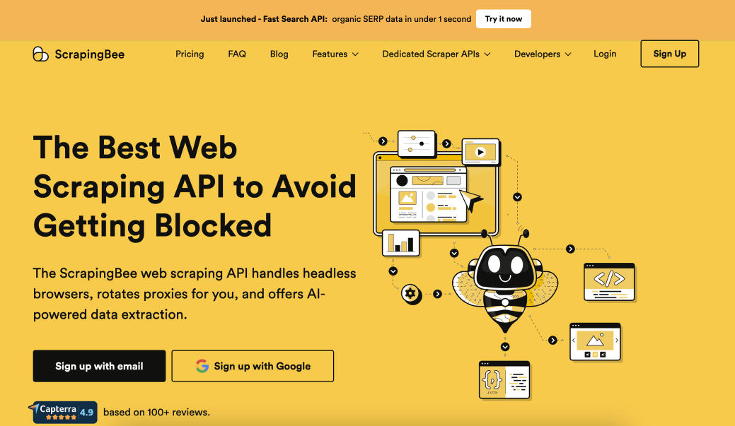 ScrapingBee is built for individuals and growing businesses that want clean, reliable web scraping without managing infrastructure. It handles headless browsers, proxy rotation, and JavaScript rendering behind a simple API, making it easy to extract data from modern, dynamic websites.