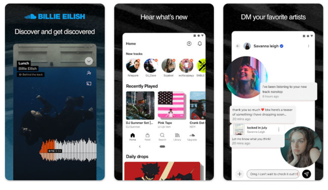 SoundCloud is one of the most popular apps for music creators and collaborators. Artists can upload their audio recordings and make them available for streaming globally. Users can follow their favorite artists, create playlists, and interact with the music community.