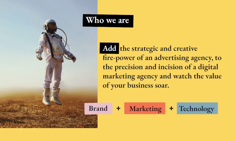 Add the strategic and creative fire-power of an advertising agency to the precision and rigour of a digital marketing agency, and watch the value of your business soar.Â