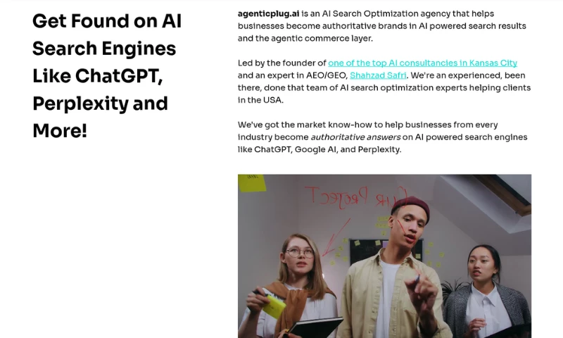 agenticplug.ai is an AI first company with expertise in AI Search and Agentic Commerce Optimization, dedicated to helping businesses enhance their visibility on AI-powered search engines and prepare for the future of autonomous commerce. Led by Shahzad Safri, founder of 360 Automation AI and a prominent AI consultant, the firm specializes in Answer Engine Optimization (AEO), Generative Engine Optimization (GEO) and Agentic Commerce Optimization.Ā