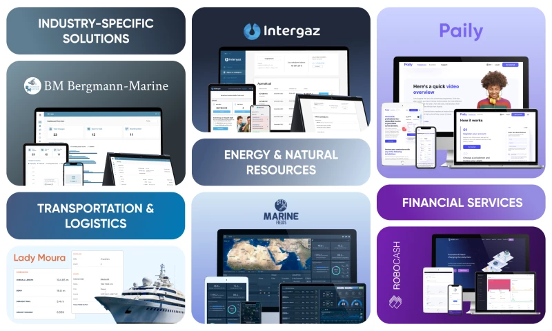 Logistics, Maritime, Energy, Travel Tech, FinTech, EdTech, HRTech, Social Networks, and E-Commerce.