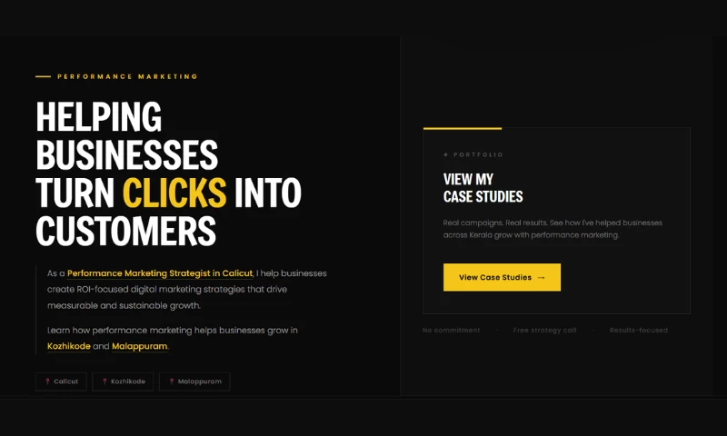 Digital Growth Lab is a performance marketing setup based in Calicut, Kerala, founded by Akhil Mansoor. We help businesses across Kozhikode, Malappuram, and Kerala grow through ROI focused digital marketing strategies including Meta Ads (Facebook & Instagram), high converting landing page development, SEO, and marketing analytics. Every campaign is built around one goal measurable results at the lowest possible cost per lead. We work with local businesses, e-commerce brands, and service providers across Kerala and South India on both project based and monthly retainer partnerships.