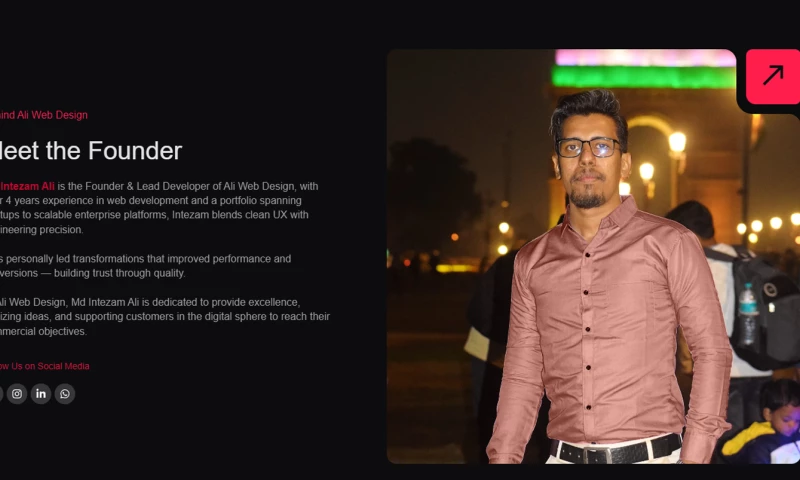 At Ali Web Design, Md Intezam Ali is dedicated to provide excellence, realizing ideas, and supporting customers in the digital sphere to reach their commercial objectives.