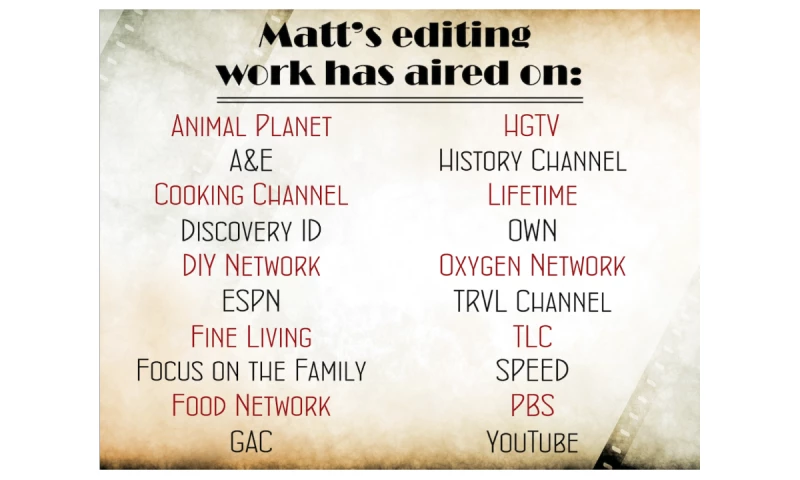 I have worked in the video production field nearly all my life and have been blessed to work on several amazing projects with super talented professionals within the Network Television field.