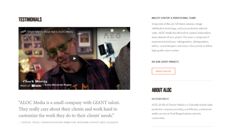ALOC was a pleasure to work with! Scott and his team were very professional and produced extremely high quality and professional videos for our company. Highly recommend! "Lexie Ward's Review Sourced from Google