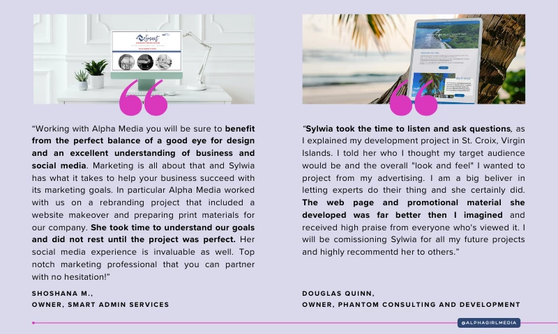 Hi, I'm Sylwia, the founder of Alpha Girl Media. I specialize in designing visually captivating brand identities for both digital and print media in addition to developing and implementing effective social media marketing strategies for my clients.