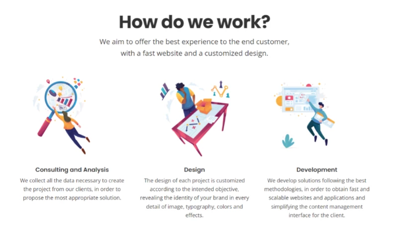 It is composed of a multidisciplinary team with members boasting over 20 years of experience, offering solutions in web design, graphic design, website development, mobile applications, and software.
