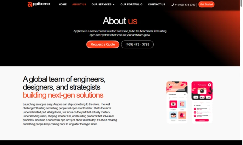 From early concept planning to full product deployment, Appitome provides end to end development services that help businesses launch and grow their digital products. Their development process includes product discovery, roadmap planning, design, development, testing, and post launch support to ensure every solution is stable and ready for real users.