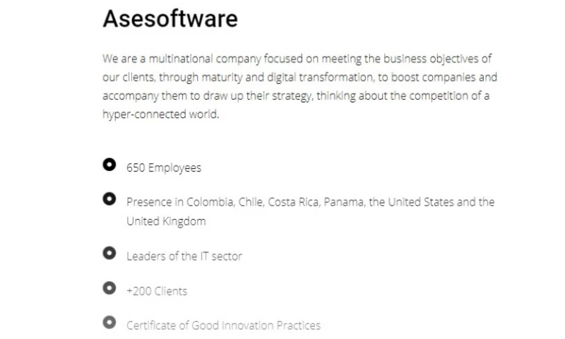 This is an excellent company to waste time, money and everything that goes with it, LATE PAYMENTS, THEY DO NOT COMPLY WITH THE TERMS OF THE CONTRACT, YOU HAVE TO VOID YOUR VOUCHER AND EVEN SO MONTHS GO BY AND THEY DO NOT PAY THE SETTLEMENT, OR THE BALANCE PAYMENTS FOR MONTHS THAT WERE PENDING PAYMENTS, BONUS AND, WORSE EVEN, THEY OWE SOCIAL SECURITY. If you have to make an excellent decision, it is not to look at ASESOFTWARE; there is no growth, there is nothing!!! Nothing they promise you, nothing they talk about is fulfilled, they start by owing you 1 month, then 2 and if they owe you 3, it is better to resign!!! "Juan Escorcia Rudas's Review Sourced from Google