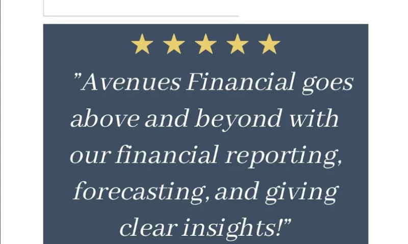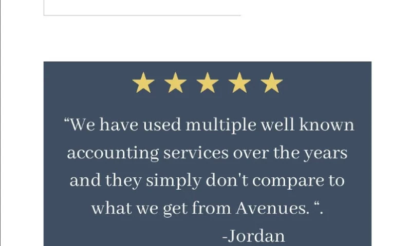 Avenues Financial provided exceptional service in bookkeeping and business consulting services. From the moment I started working with their team, I was impressed by their professionalism and dedication to understanding my business's unique needs. Their bookkeeping services are meticulous, ensuring every transaction is accurately recorded and organized. This attention to detail provides me with the confidence that my financial records are in excellent hands, allowing me to focus on growing my business. What truly sets Avenues Financial apart is their insightful business consulting. Their team doesn't just crunch numbers; they offer valuable advice and strategic guidance tailored to my specific needs. They are always there with expert insights and solutions. I highly recommend their services to any business seeking top-notch financial expertise. "customer's Review Sourced from Google