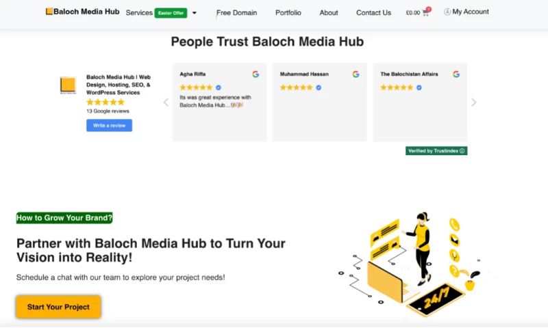 I recently had the pleasure of working with Baloch Media Hub, and I am beyond impressed with their services. From website design to SEO, their team demonstrated exceptional skill and professionalism. Their attention to detail and commitment to delivering excellence truly sets them apart. I highly recommend Baloch Media Hub to anyone looking to elevate their online presence and achieve their digital goals. Thank you for an outstanding experience! "KIFAYAT BALOCH's Review Sourced from Google
