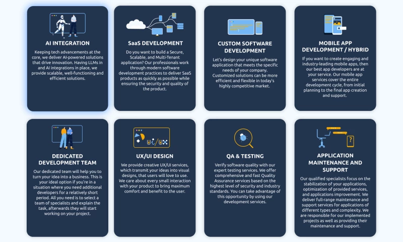 We suggest full-cycle services that cover every aspect of software engineering: