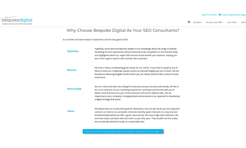 We've used Bespoke Digital for two years now, initially to help with the relaunch of our website, and then to drive traffic to the site and generate new business leads. They were friendly, knowledgeable and always professional to deal with from the word go.The Onsite work done for our site is extremely thorough and the quality of the content produced for our outreach programme is spot on for our brand and audience.Bespoke have increased traffic to our site by over 300% in two years and they have helped us to rank in Top 3 positions for 18 of our target keywords. 57 keywords are now in the top 10 where previously we had no online traction at all. The leads we generate from our website are quality enquiries firmly within our target market.Can't recommend highly enough, especially if you need a detailed, consultative approach. "Gemma Maroney's Review Sourced from Google