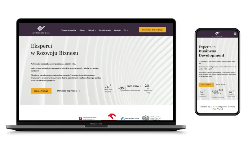 AV Inwestor SA is active since May 2000. Patryk and his team changed our website to the modern one in 2023. In result we got new inquires and number of visits on our website increased by 150-300%. "Project Name: New company website