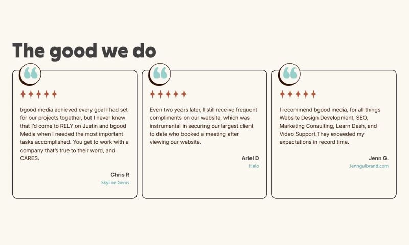 Secret Sauce for Success? It's not really a secret. We only work with a handful of clients at a time, so we can truly focus on our clients' goals. Time and time again, we noticed agencies churn and burn clients and employees by overloading their team with too many accounts. Our promise is to work with you as your partner dedicated to reaching your business's goals without spreading our bandwidth too thin between clients.
