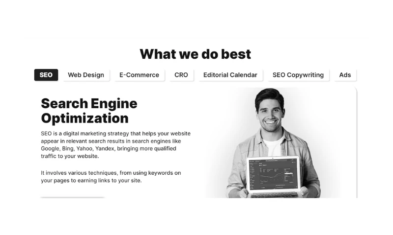 Start off your digital journey with a stunning and top-notch website, position it at the top of Google's result pages, and use our services to increase your conversions.