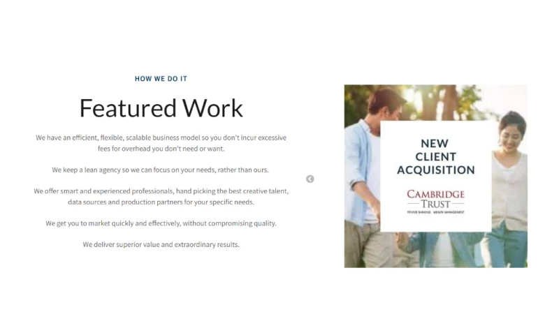 At BKM Marketing, we understand the power of direct marketing in helping businesses achieve their goals efficiently and effectively. With our integrated approach, smart strategy, and award-winning creative solutions, we provide comprehensive direct marketing programs for banks and results-driven marketers.