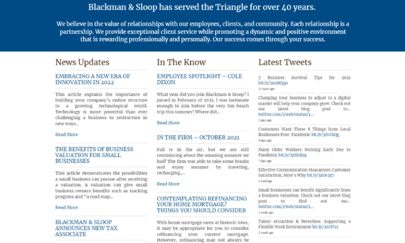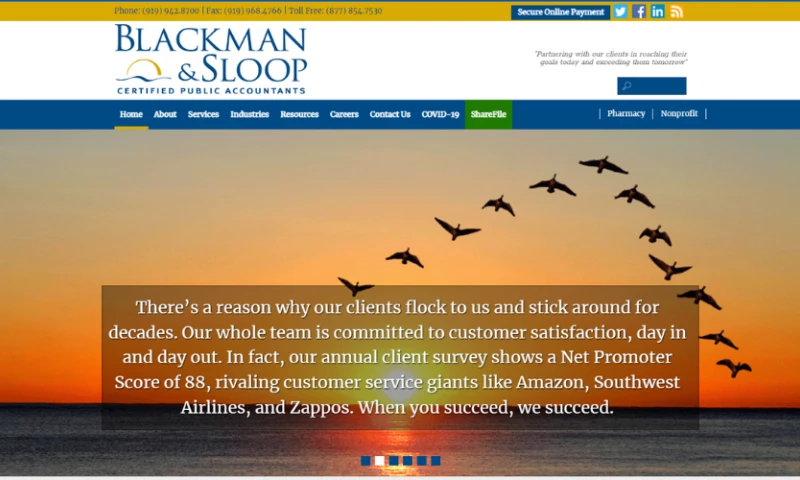 Blackman & Sloop are one of the most professional, friendly and knowledgeable accounting firms in Chapel Hill. I highly recommend them. I have worked with multiple members of their team over the years and always feel comfortable calling them with complex tax questions and IRS issues. They always respond quickly and provide excellent service. "Michael Zuber's Review Sourced from Google
