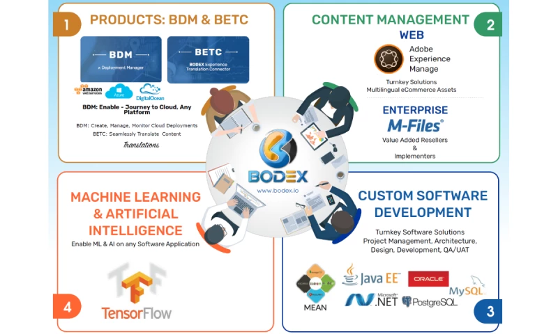 Company Mission Statement: We at BODEX are committed to bringing competitve advantage to Businesses and People we touch by implementing world class, state of the art software Technologies and Frameworks for them so they can use these tools as enablers and efficiency enhancers.