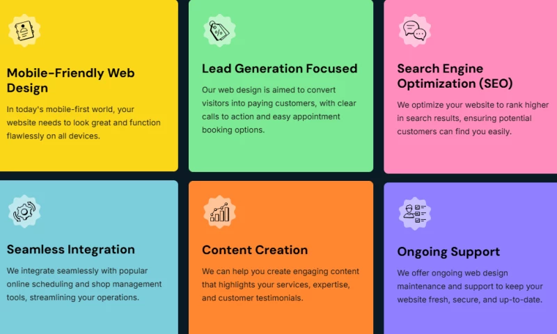 Our website design and conversion optimization services will help with this. Well, create a user-friendly website with clear navigation, compelling calls to action, and informative content that builds trust and convinces visitors to book appointments or request quotes directly through your website.