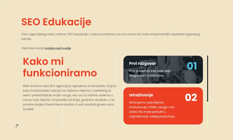 Our SEO agency's website is built on a template (which is semi-functional) because we don't invest time in marketing ourselves and presenting our services, but rather invest all that time in working for our clients. From start to finish, we chase results, not imaginary numbers or meaningless analyses. And our results speak for themselves.