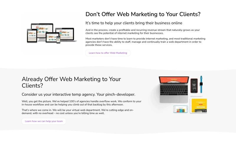 We help marketers offer website services to their clients.
