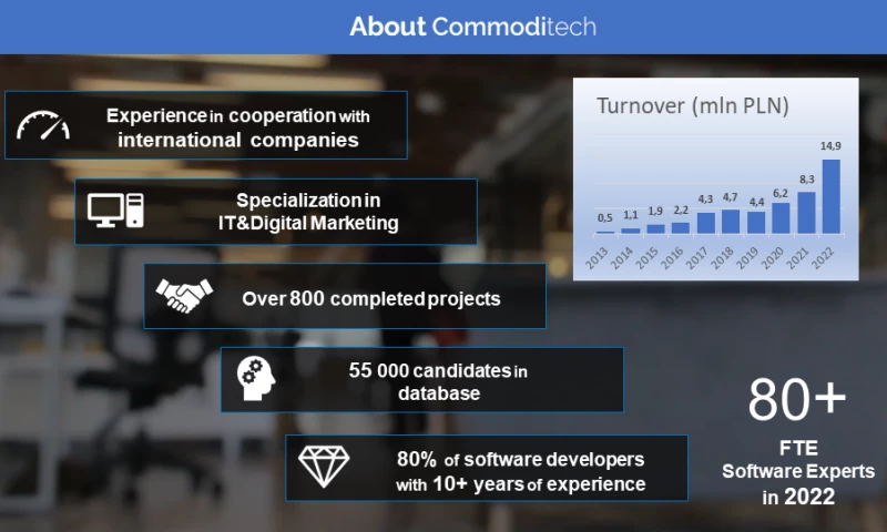 During the last 10 years we went from an IT outsourcing agency and recruitment powerhouse to software house and interactive agency where we manage entire marketing endevours like offline and online conferences based on our IT system, introducing new concepts and digital solutions to the market. We can deliver an end to end solution or help with staff augmentation (time & materials) when you just need to increasy your dev team temporarily.Â