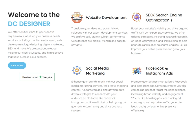 Working with Dc Designer has been a fantastic experience. Right from the beginning, they really understood what I needed for my website. The design they created was not only visually appealing but also incredibly easy to navigate. I've received so many compliments on how user-friendly the site is, and I couldn't be happier with how it turned out.What really impressed me was their SEO work. I started seeing improvements in my website’s ranking much quicker than I expected. The increase in traffic has been noticeable, and it's all thanks to the smart SEO strategies they implemented.Another thing I appreciated was how they optimized my website for both mobile and desktop users. The site runs smoothly on all devices, and the load times are fast, which has really improved the overall experience for visitors.Overall, I couldn’t recommend Dc Designer enough. They were professional, creative, and easy to work with. I’m so glad I chose them, and I look forward to working with them again in the future.— Mehak "Sonu Ror's Review Sourced from Google