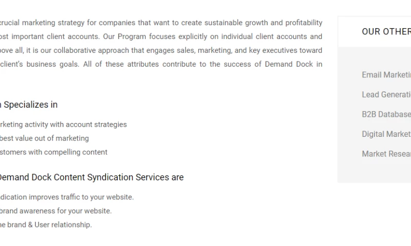 Demand Dock combines sales lead generation with marketing strategy and creative capabilities to deliver the most integrated and extensive demand generation. Our purpose is to help B2B companies acquire new customers, strengthen existing relationships and optimize sales team performance.