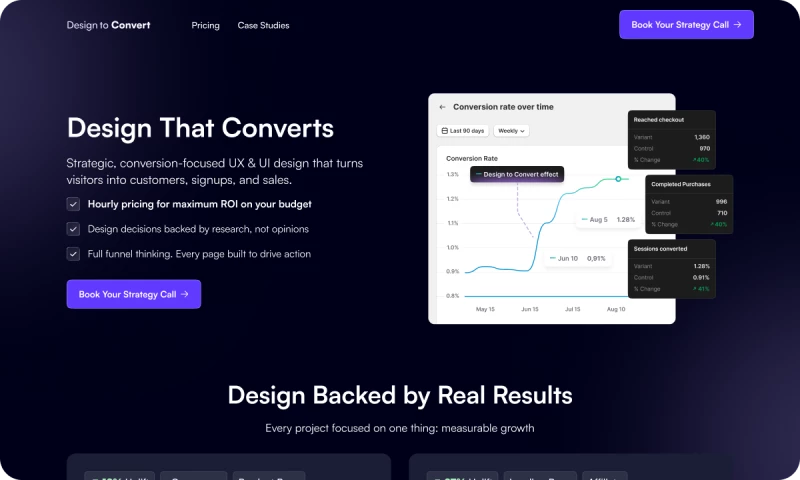 Design to Convert is the partner for brands that want design that performs, not just design that looks nice. From research to design to real revenue growth whether you need to optimize the existing funnel, redesign the whole website or build a new website from scratch.