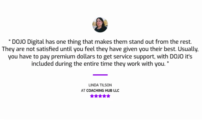 Dojo Digital has one thing that makes them stand out from the rest. They are not satisfied until you feel they have given you their best. Usually, you have to pay premium dollars to get service support, with Dojo it's included during the entire time they work with you on your contracted sevices. "Linda Tilson's Review Sourced from Google