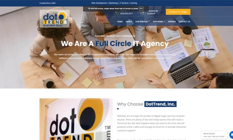 Focusing on the Midwest and South-Central regions, DotTrend created websites and content-management systems for hundreds of clients, including many repeat customers. Today, the company's expertise has broadened to include software and mobile app development, database infrastructure design and management, online game development , e-commerce solutions and custom software services.