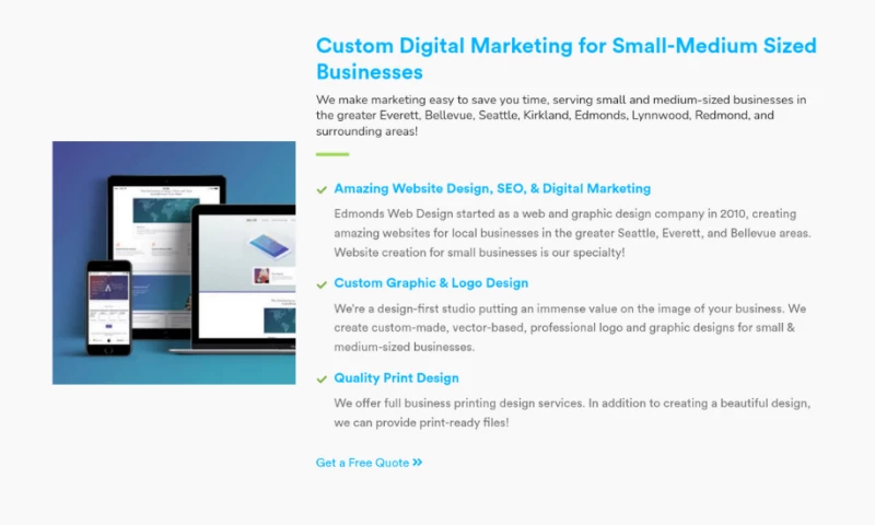 Edmonds Web Design started as a web and graphic design company in 2010, creating amazing websites for local businesses in the greater Seattle, Everett, and Bellevue areas. Website creation for small businesses is our specialty!