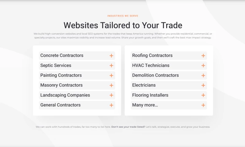 - Custom Website Design & Development High-conversion, SEO-ready WordPress websites tailored to contractors and service businesses.