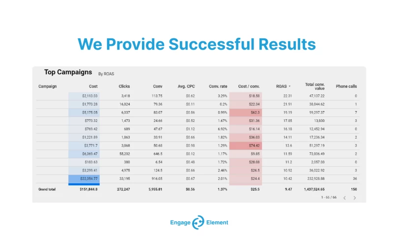 We partner with Engage Element for PPC and SEO service as we need more traffic and conversion leads. Eliana has been very helpful and patient in assisting us. We get a lot of big leads through Google ads, and our web traffic increases by 30% as well. We appreciate their great work and recommend them to everyone! "Project Name: Lead Generation Campaigns