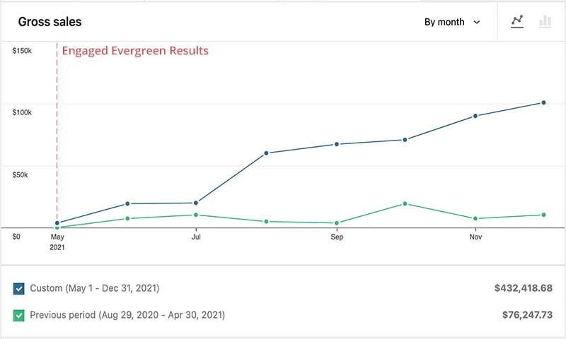 We came to Evergreen when we were desperate to get our social media marketing to work. We started with Evergreen just over 1 year ago and they helped us go from $1,000 a month in online revenue to over $130,000 a month in online revenue in under 1 year! Very thankful for this team and couldn't have done it without them. "Project Name: Ad management and Website