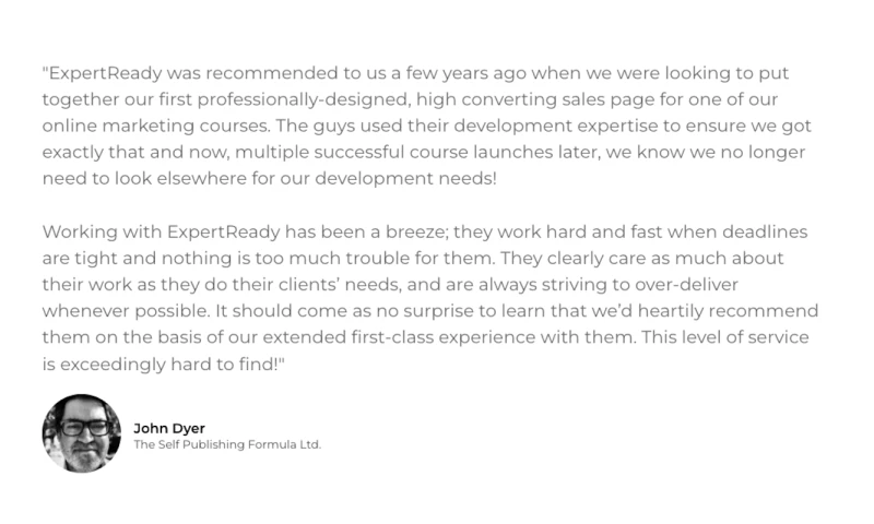 We recently used Expert Ready to do a piece of development on our server. My point of contact was Jon, who I found to be very helpful and very quick to respond to my queries. Expert Ready delivered on time and provided great support afterwards. I highly recommend them and will definitely be using them again. "Matt Rippon's Review Sourced from Google
