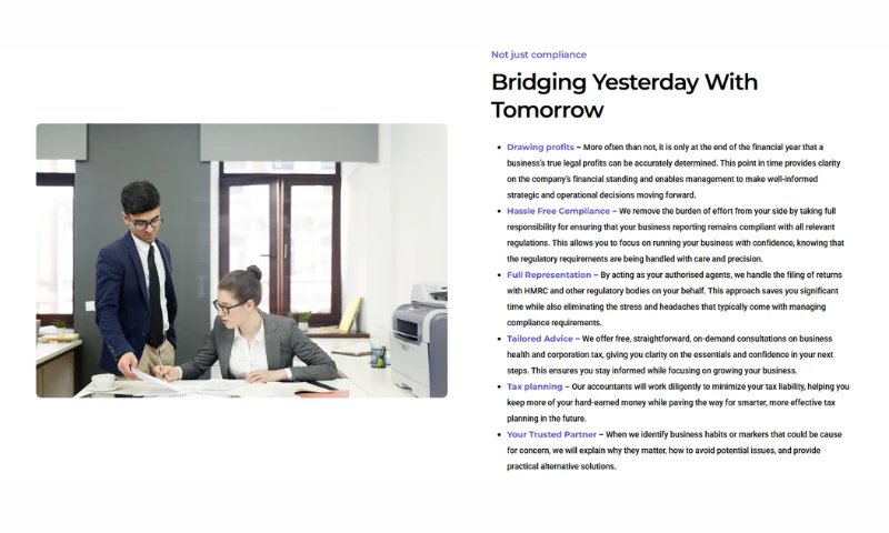 Beyond routine compliance, Flux positions itself as a strategic partner for growth by delivering tailored financial insights and advice that support smarter decision-making. Their services are built around understanding each clients unique goals, allowing them to provide bespoke reporting, proactive tax planning, and ongoing support that goes beyond year-end filings. This approach ensures that businesses not only stay compliant but also gain actionable insights into cost control, budgeting, and profitability, with transparent pricing and dedicated client support throughout the year.