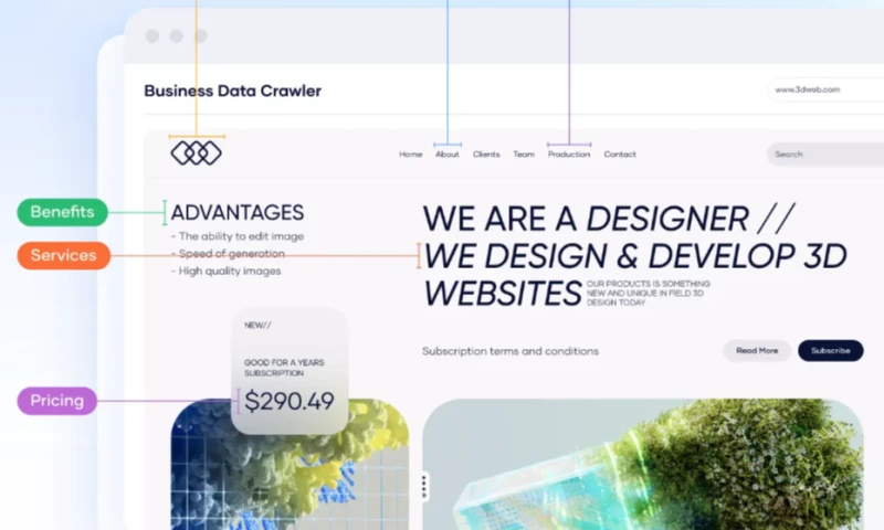- Web Data Extraction: Extract business, firmographic, social media, and news data from any website, with options for automated monitoring and custom on-demand datasets.