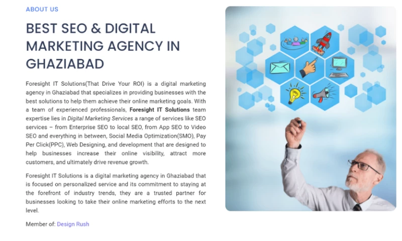 At Foresight IT Solutions, we are a dedicated digital marketing agency based in Ghaziabad, specializing in small business SEO, and we're committed to helping businesses achieve their online marketing objectives. Our experienced team excels in a broad spectrum of Digital Marketing Services, including SEO, SMO, PPC, Web Design, and Development, all crafted to enhance online visibility, attract customers, and drive revenue growth.