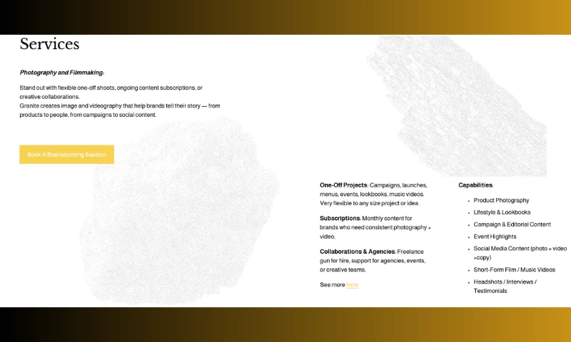 What sets Granite apart is our ability to merge creativity with clarity. Every shoot is built around the story a brand wants to tell, with attention to detail in mood, composition, and aesthetic. We work closely with clients to understand their goals and deliver content that not only looks striking, but also drives engagement and builds recognition.