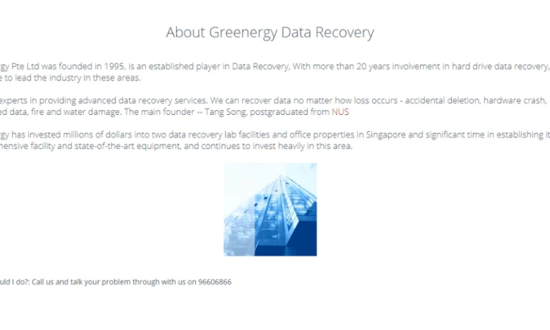 Greenergy Pte Ltd was founded in 1995, is an established player in Data Recovery, With more than 20 years involvement in hard drive data recovery, will continue to lead the industry in these areas.